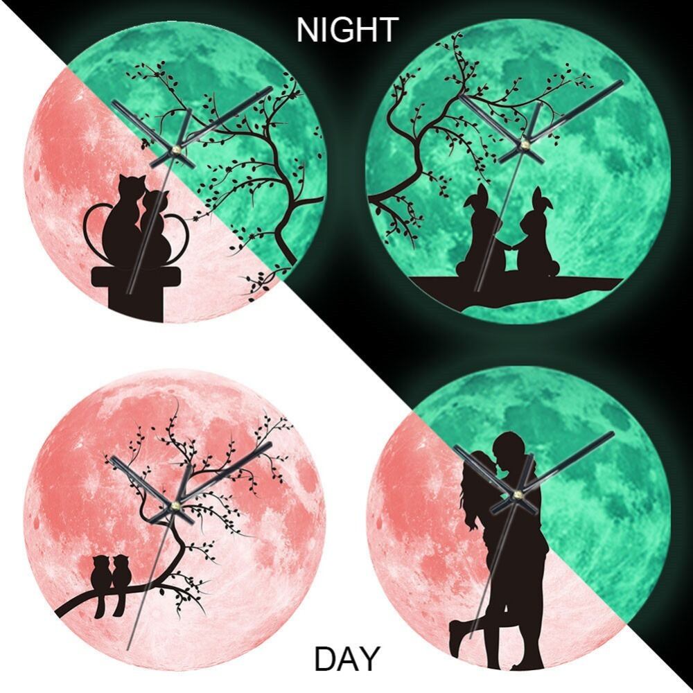 壁掛け時計 月 MOON 暗闇 蓄光 発光 ピンク 恋人 カップル キス 人気