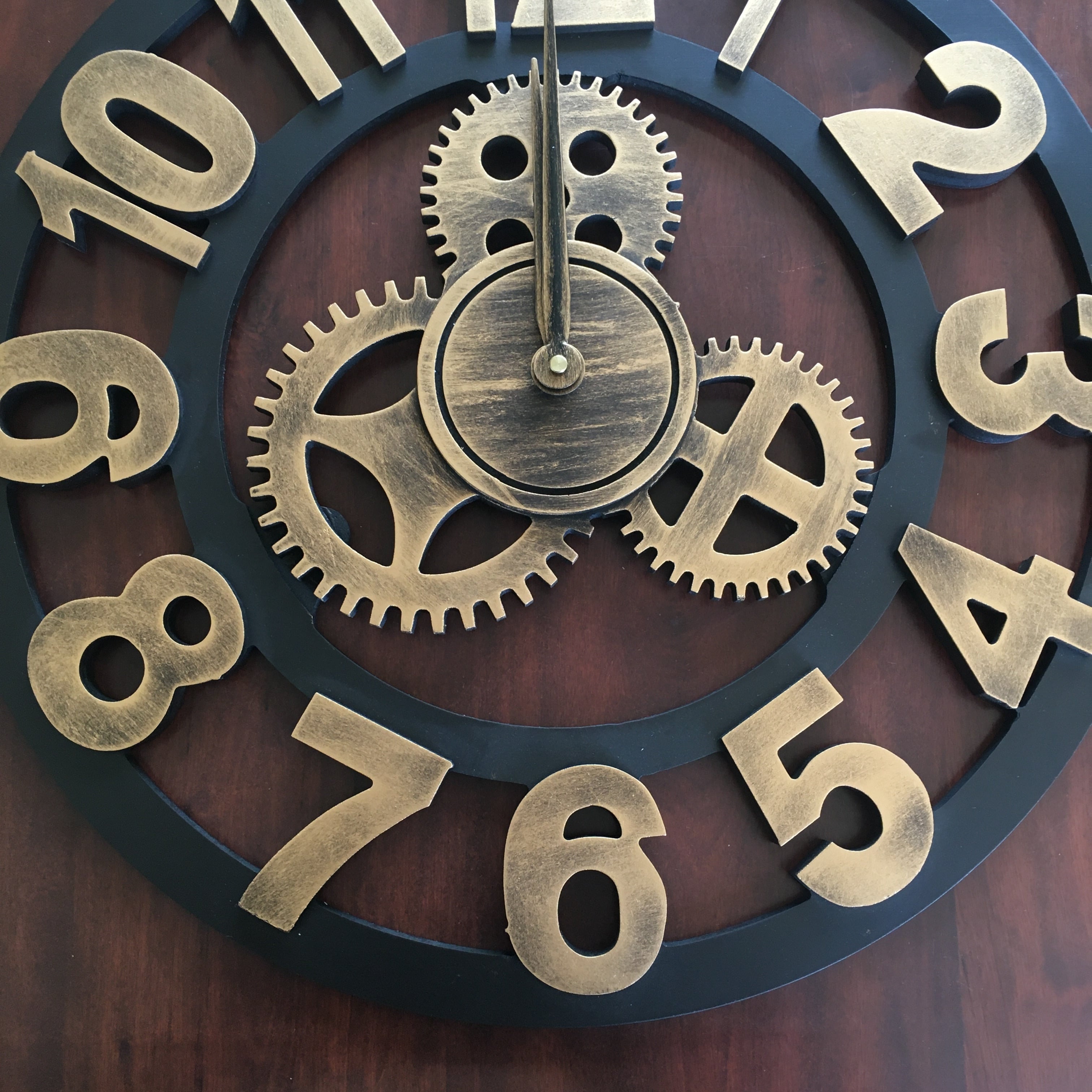 50cm 特大 壁掛け時計 3D レトロ 歯車 ギア 輸入雑貨 金 ゴールド
