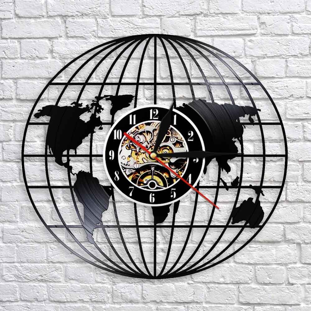 送料無料 30cm レコード盤 壁掛け時計 世界地図 World Map おしゃれ 人気 エコ インテリア ディスプレイ アート 輸入雑貨