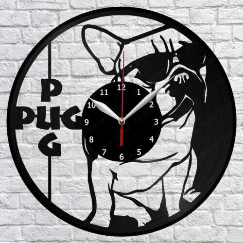 送料無料 30cm レコード盤 壁掛け時計 パグ Pug 小型犬 愛犬 家族 サングラス おしゃれ エコ インテリア ディスプレイ アート 輸入雑貨