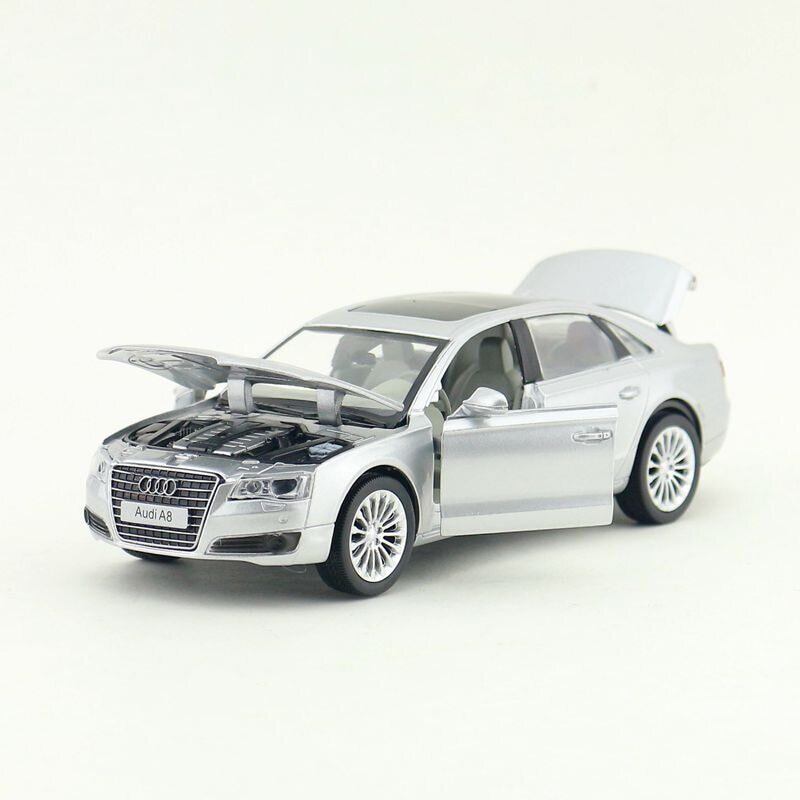 送料無料 1/32 アウディ Audi A8 高級乗用車 銀 シルバー ミニカー ダイキャストカー モデルカー コレクション インテリア ディスプレイ