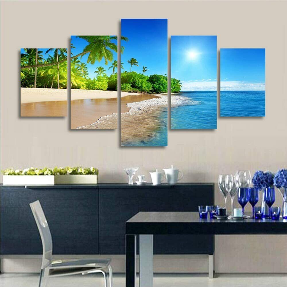 送料無料 木枠付き 壁掛け キャンバス 5枚組 ビーチ 海 ヤシの木 南国 南の島 バカンス アート おしゃれ インテリア ディスプレイ 輸入雑貨