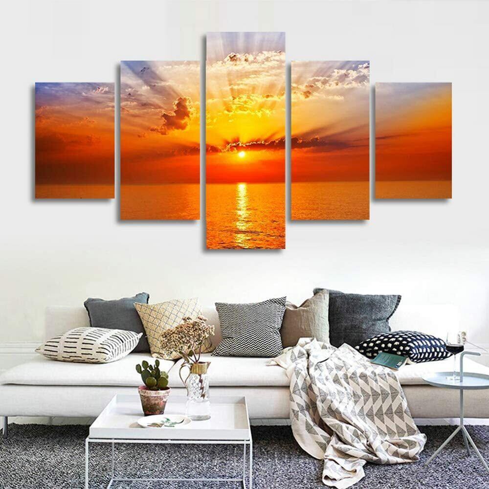 木枠付き 壁掛け キャンバス 5枚組 海 ビーチ 波 朝日 夕日 水平線 南国 南の島 バカンス 人気 アート インテリア ディスプレイ 輸入雑貨