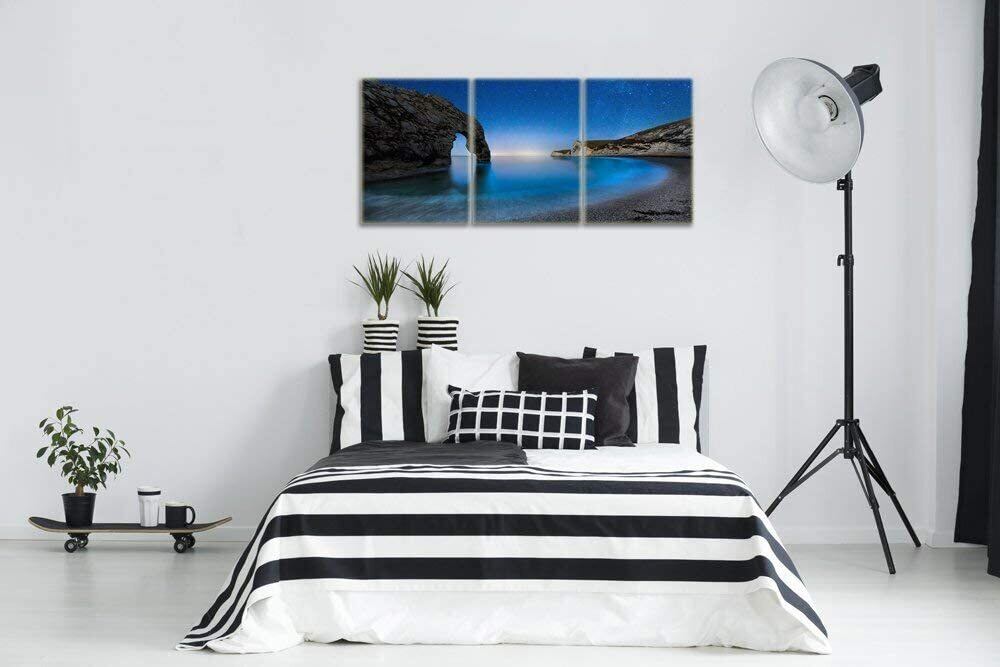 送料無料 木枠付き 壁掛け キャンバス 3枚組 海 ビーチ 星空 バカンス 南国 南の島 おしゃれ インテリア ディスプレイ アート 輸入雑貨