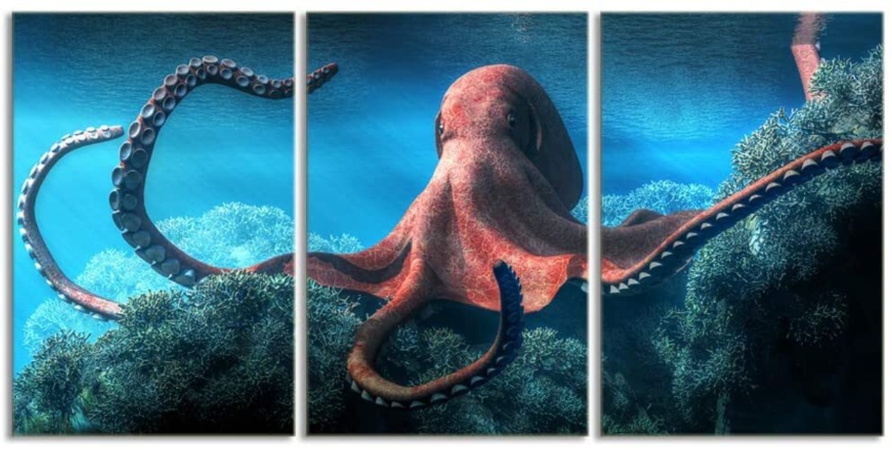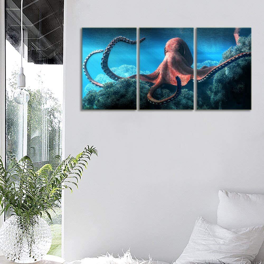 送料無料 木枠付き 壁掛け キャンバス 3枚組 海 ビーチ 水中 巨大タコ Octopus 人気 おしゃれ インテリア ディスプレイ アート 輸入雑貨