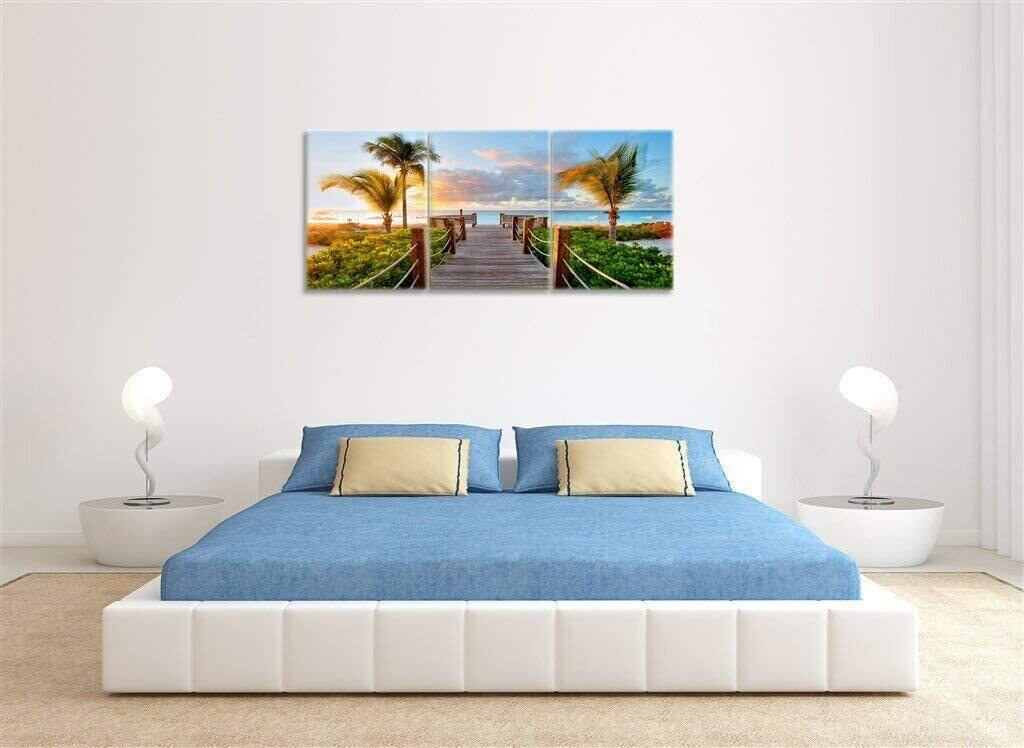 送料無料 木枠付き 壁掛け キャンバス 3枚組 海 ビーチ ヤシの木 夕日 南国 南の島 おしゃれ インテリア ディスプレイ アート 輸入雑貨