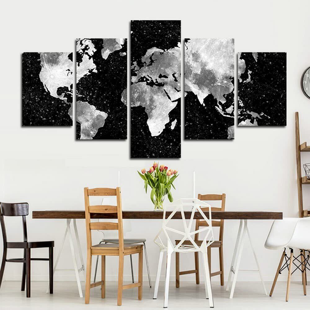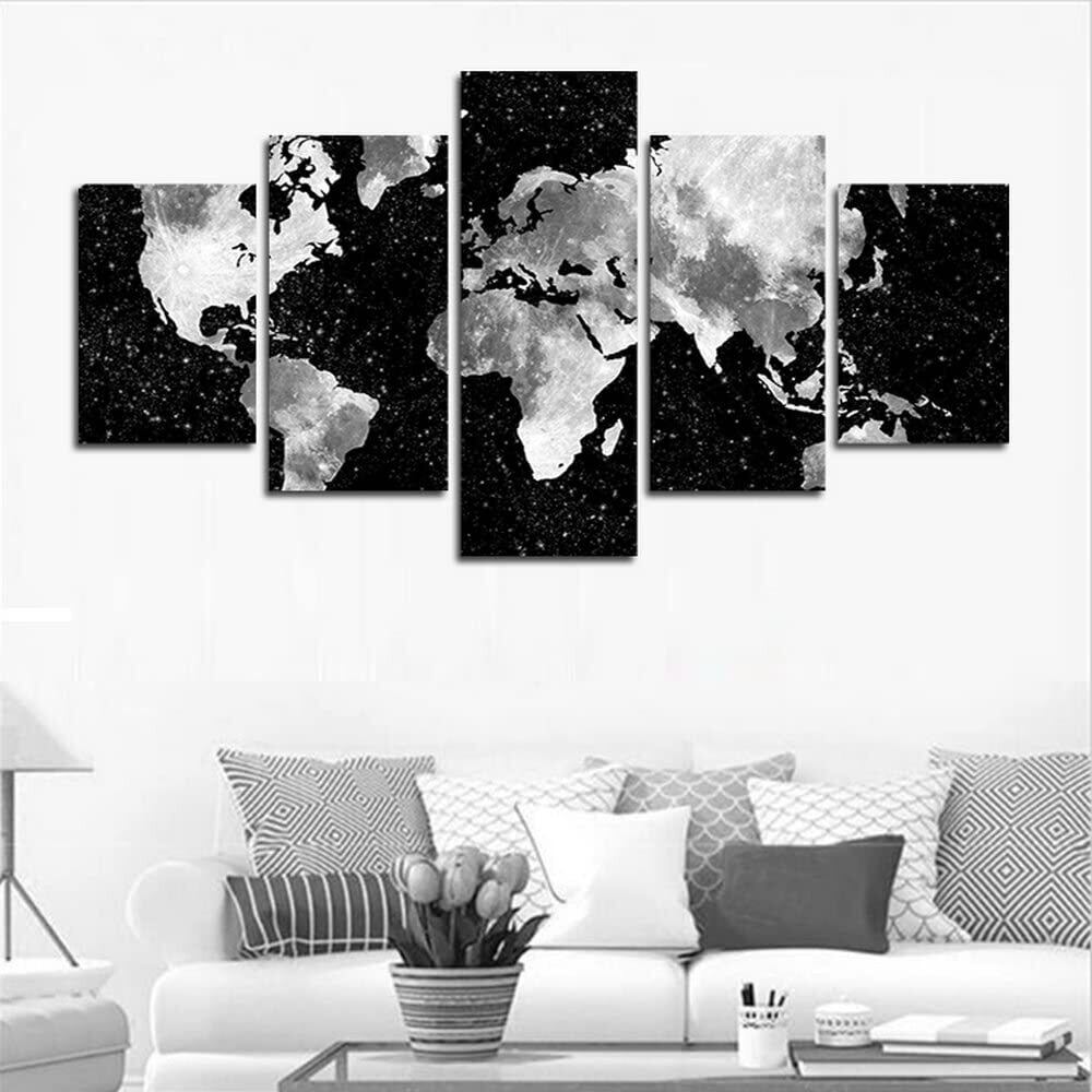 送料無料 木枠付き 壁掛け キャンバス 5枚組 世界地図 World Map 白黒 モノクロ 人気 おしゃれ インテリア ディスプレイ アート 輸入雑貨