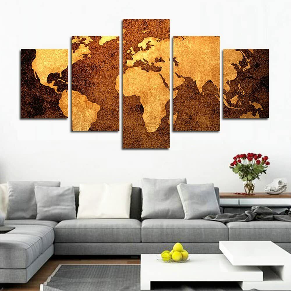 送料無料 木枠付き 壁掛け キャンバス 5枚組 世界地図 World Map 古代 壁画風 人気 おしゃれ インテリア ディスプレイ アート 輸入雑貨