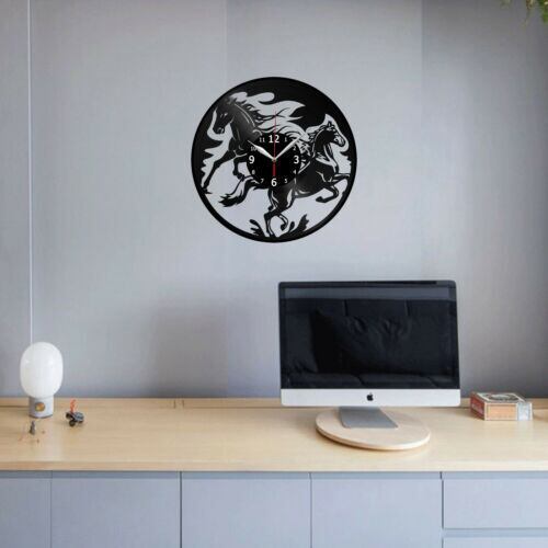 送料無料 30cm レコード盤 壁掛け時計 ウマ Horse 動物 乗馬 競走馬 競馬 人気 おしゃれ エコ インテリア ディスプレイ アート 輸入雑貨