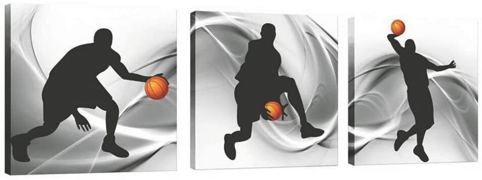 送料無料 木枠付き 壁掛け キャンバス 3枚組 マイケル・ジョーダン バスケットボール 神様 シルエット 白黒 モノクロ 人気 アート 輸入雑貨