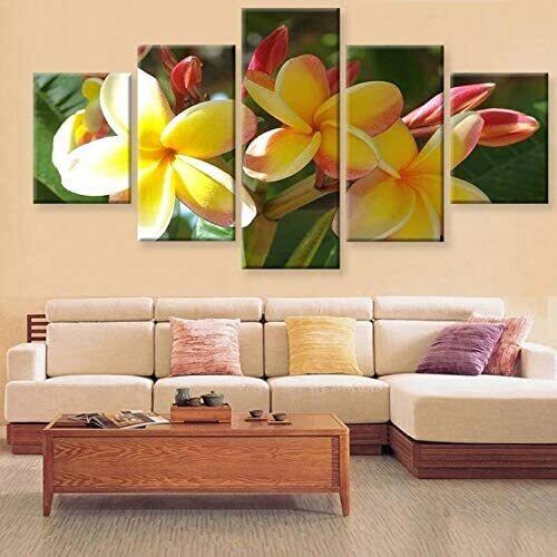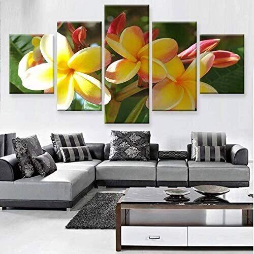 送料無料 木枠付き 壁掛け キャンバス 5枚組 プルメリア 植物 お花 黄色 イエロー 人気 おしゃれ インテリア ディスプレイ アート 輸入雑貨