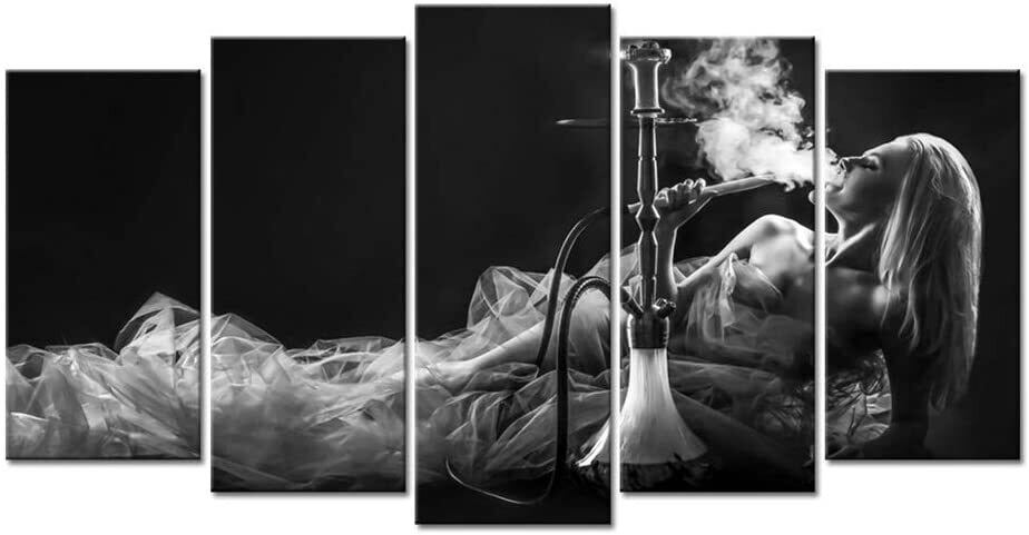 送料無料 木枠付き 壁掛け キャンバス 5枚組 セクシー 美女 水タバコ 水煙管 水パイプ シーシャ インテリア ディスプレイ アート 輸入雑貨