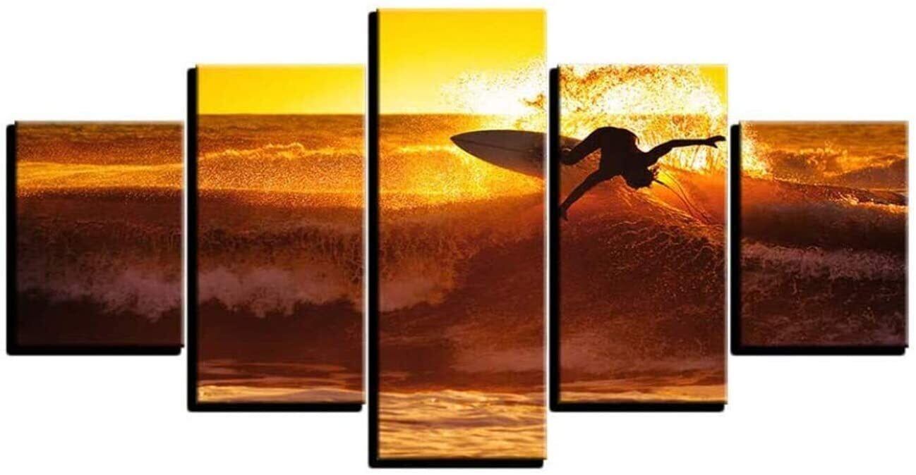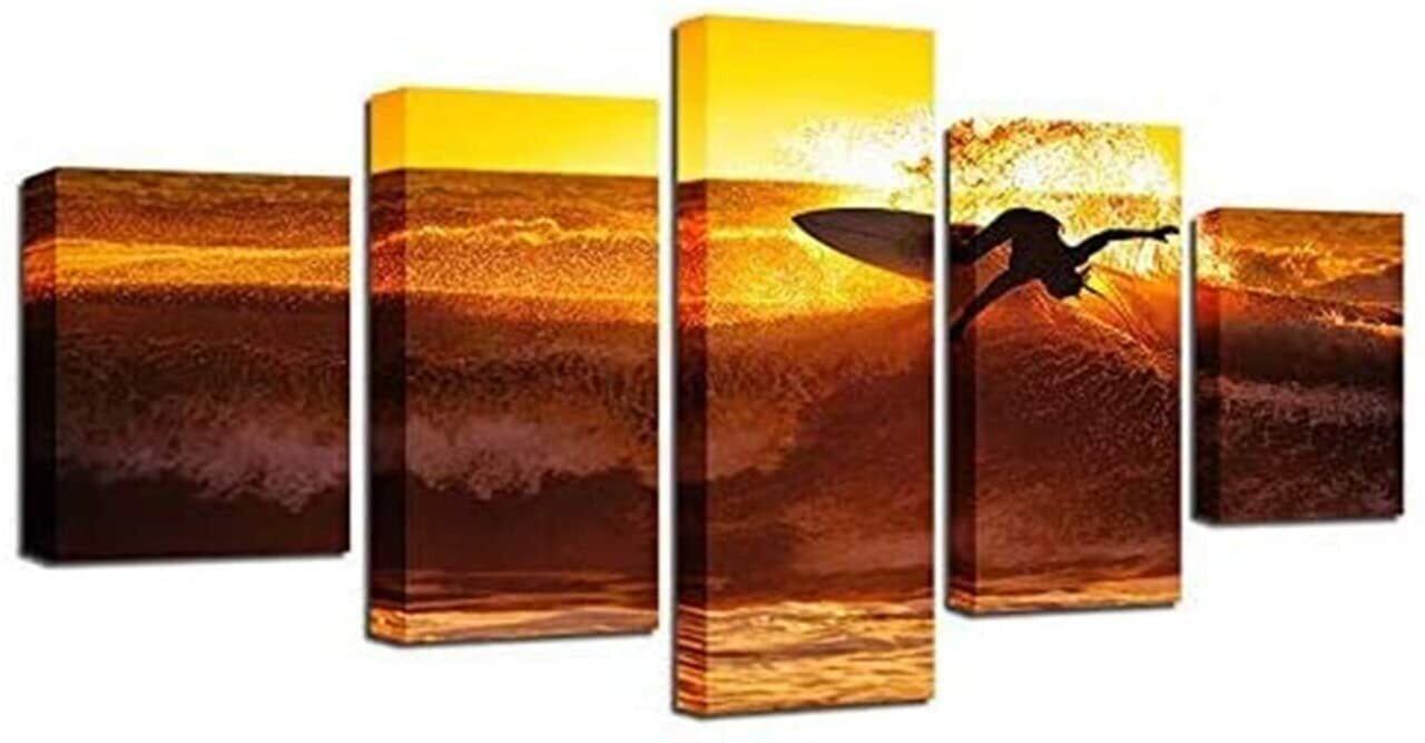 送料無料 木枠付き 壁掛け キャンバス 5枚組 サーフィン サーフボード サーファー 波乗り 夕日 インテリア ディスプレイ アート 輸入雑貨