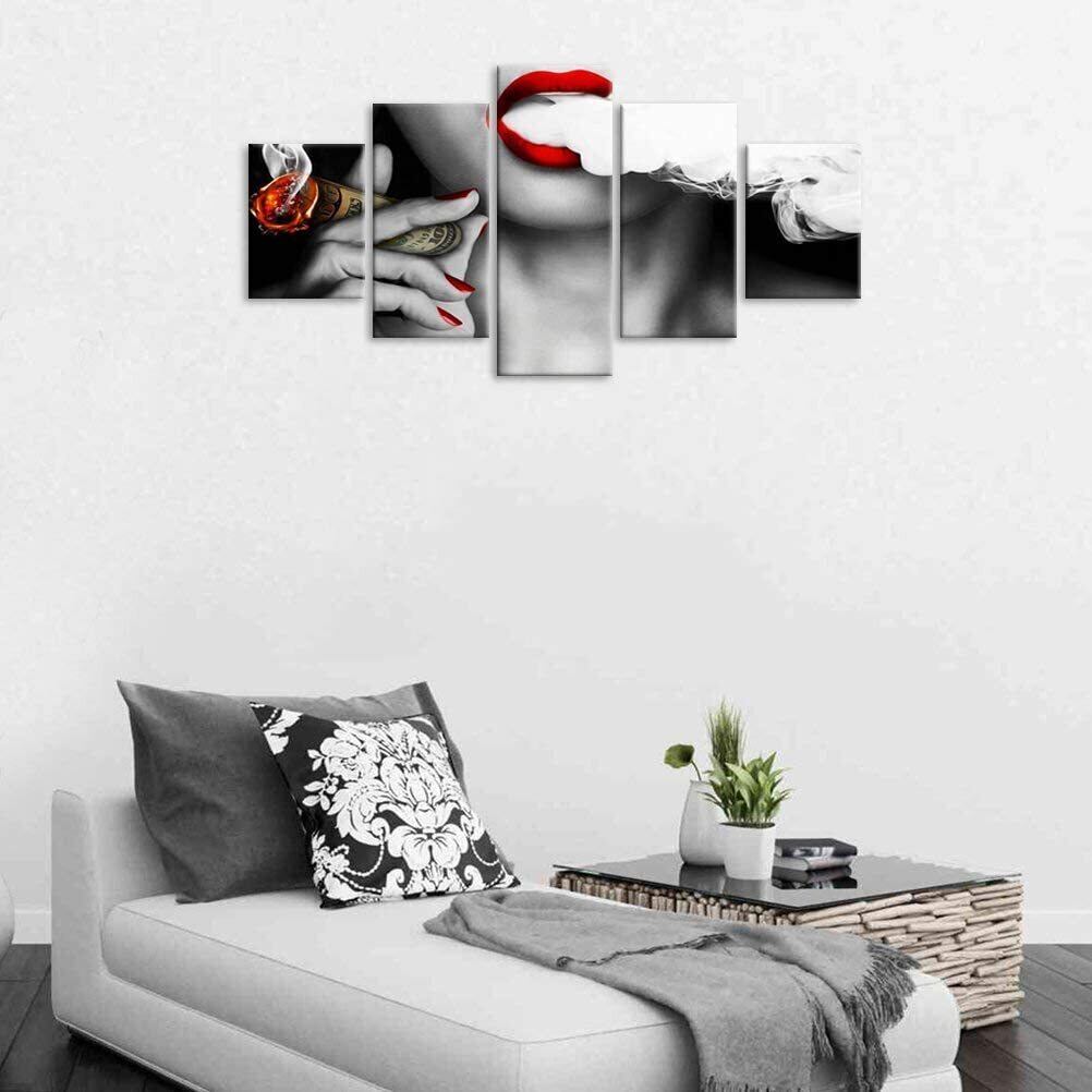 送料無料 木枠付き 壁掛け キャンバス 5枚組 セクシー 美女 お金 USドル タバコ 喫煙 モノクロ インテリア ディスプレイ アート 輸入雑貨