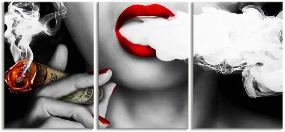 送料無料 木枠付き 壁掛け キャンバス 3枚組 セクシー 美女 お金 USドル タバコ 喫煙 モノクロ インテリア ディスプレイ アート 輸入雑貨