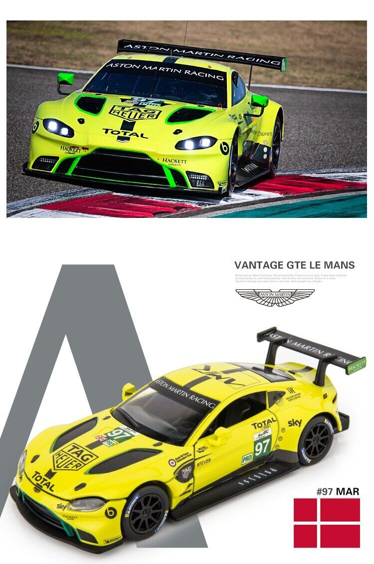 1/32 Aston Martin Vantage GTE Le Mans NO.97 スポーツカー レーシングカー 黄色 イエロー ライムグリーン ダイキャストカー モデルカー