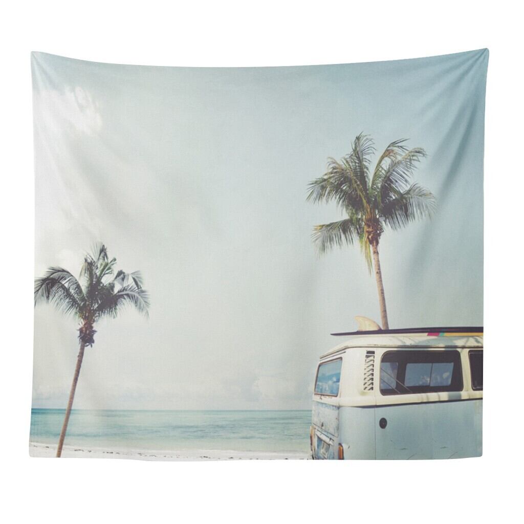 送料無料 壁掛け タペストリー 海 ビーチ ヤシの木 サーフボード キャンパーバン ワーゲンバス インテリア ディスプレイ アート 輸入雑貨