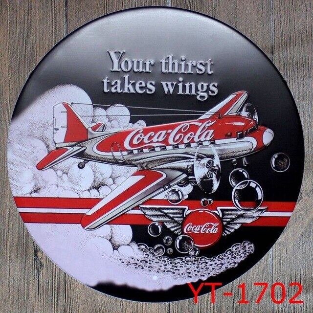 30cm メタルサイン ブリキ 看板 丸型 プレート コカ・コーラ Coca-Cola 飛行機 人気 おしゃれ インテリア ディスプレイ アート 輸入雑貨