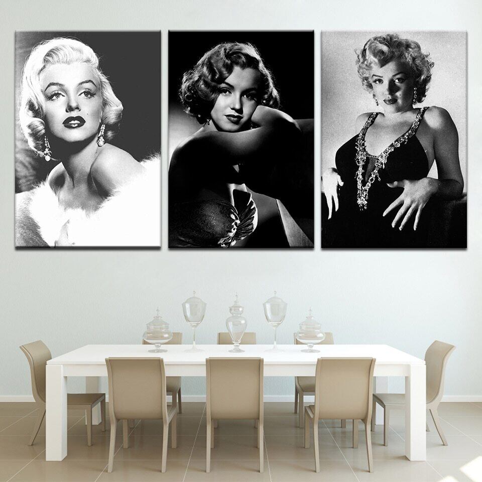 送料無料 3枚組 壁掛け キャンバス マリリン・モンロー 女優 モデル セクシー 金髪美女 白黒 モノクロ インテリア ディスプレイ 輸入雑貨