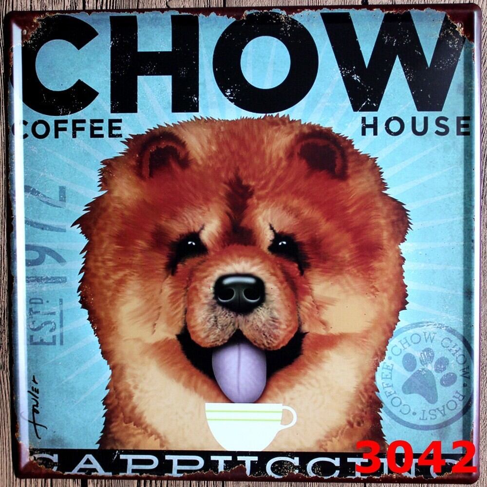 送料無料 30cm メタルサイン ブリキ 看板 プレート チャウチャウ COFFEE HOUSE カプチーノ Cafe インテリア ディスプレイ アート 輸入雑貨