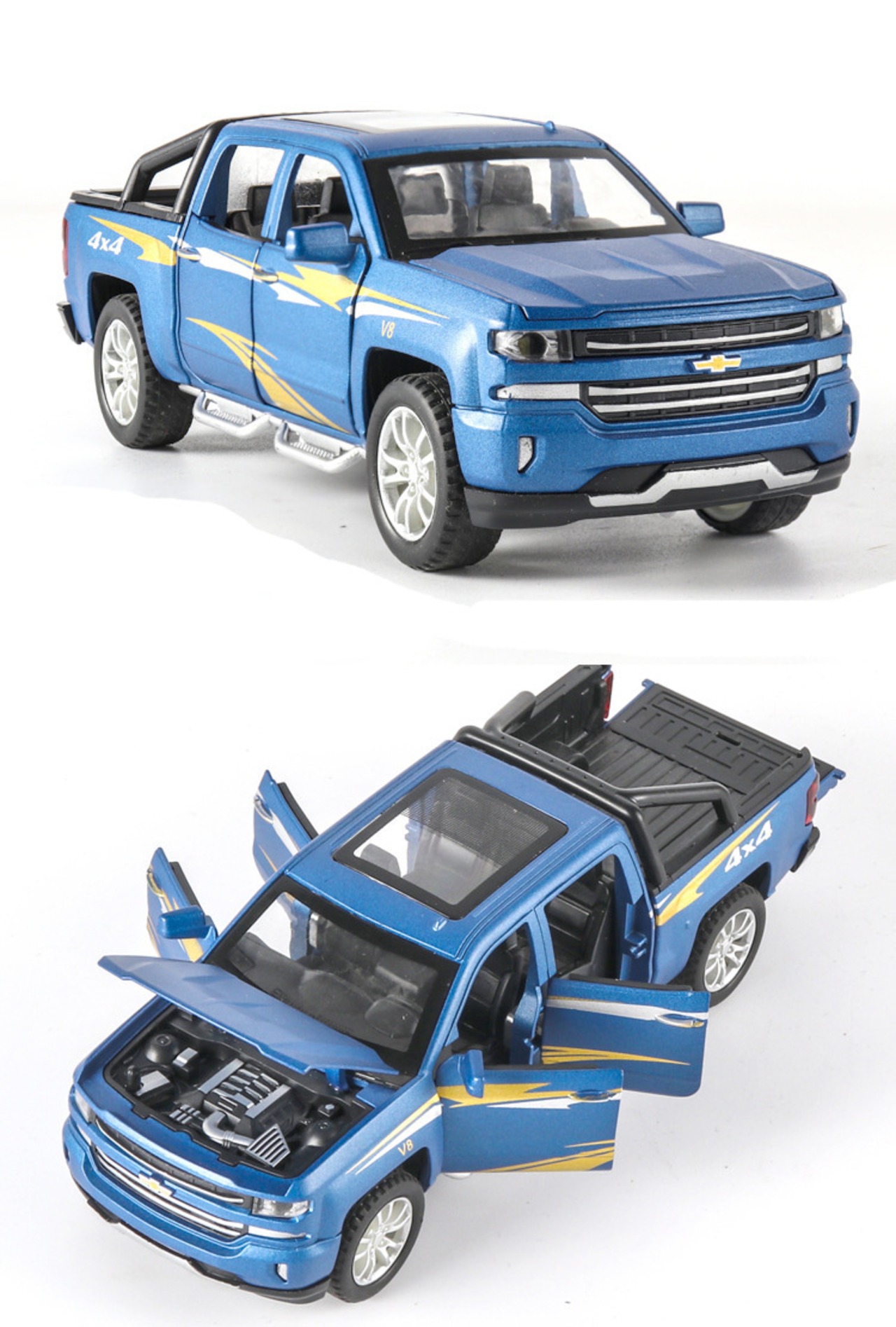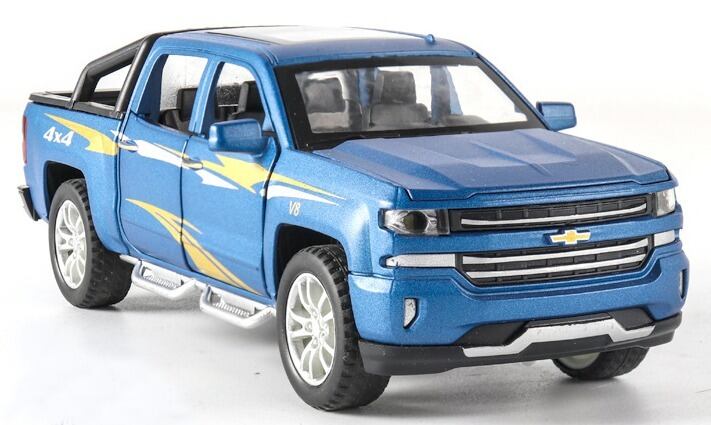 送料無料 1/32 シボレー シルバラード Chevrolet Silverado ピックアップトラック 青 ブルー ミニカー ダイキャストカー モデルカー 人気