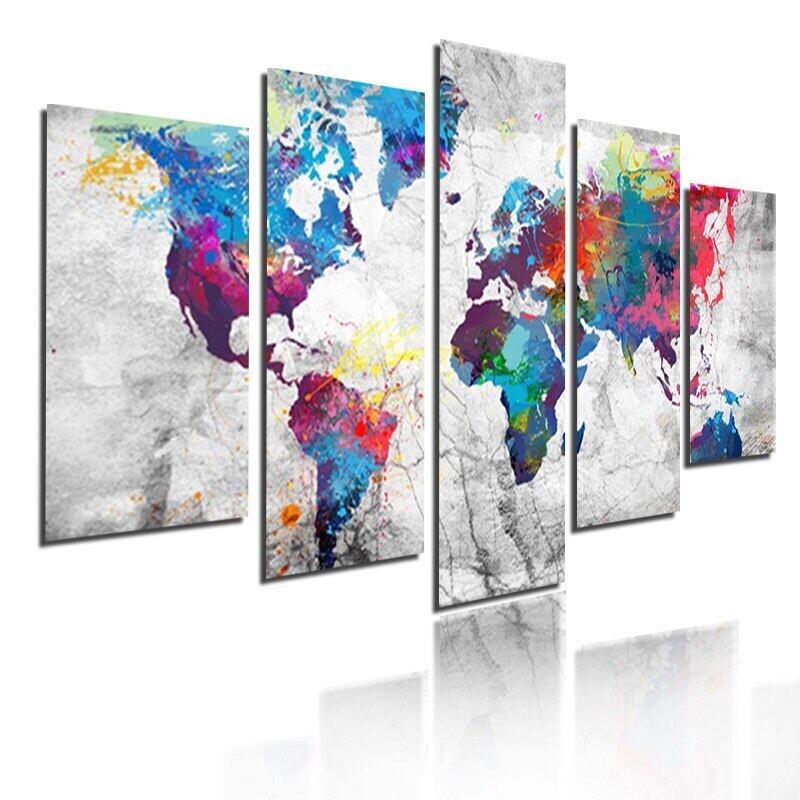 送料無料 壁掛け キャンバス 5枚組 World Map 世界地図 人気 おしゃれ アートパネル インテリア ディスプレイ 輸入雑貨