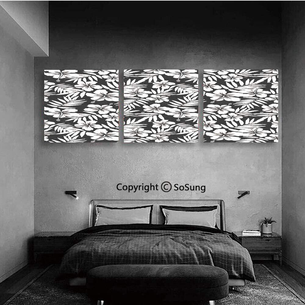 木枠付き 3枚組 壁掛け キャンバス ハイビスカス Hibiscus お花 ハワイ 沖縄 南国 白黒 モノクロ インテリア ディスプレイ アート 輸入雑貨