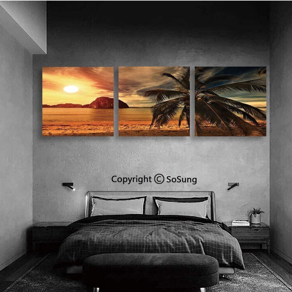 木枠付き 3枚組 壁掛け キャンバス 海 ビーチ 砂浜 ヤシの木 ハワイ 沖縄 南国 南の島 夕陽 夕日 インテリア ディスプレイ アート 輸入雑貨