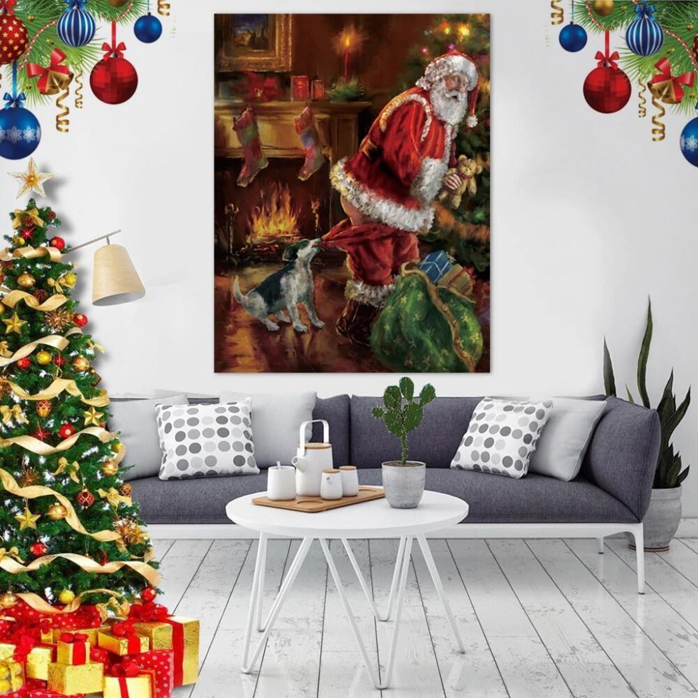 送料無料 壁掛け タペストリー クリスマスツリー サンタクロース プレゼント 犬 Dog おしゃれ インテリア ディスプレイ アート 輸入雑貨