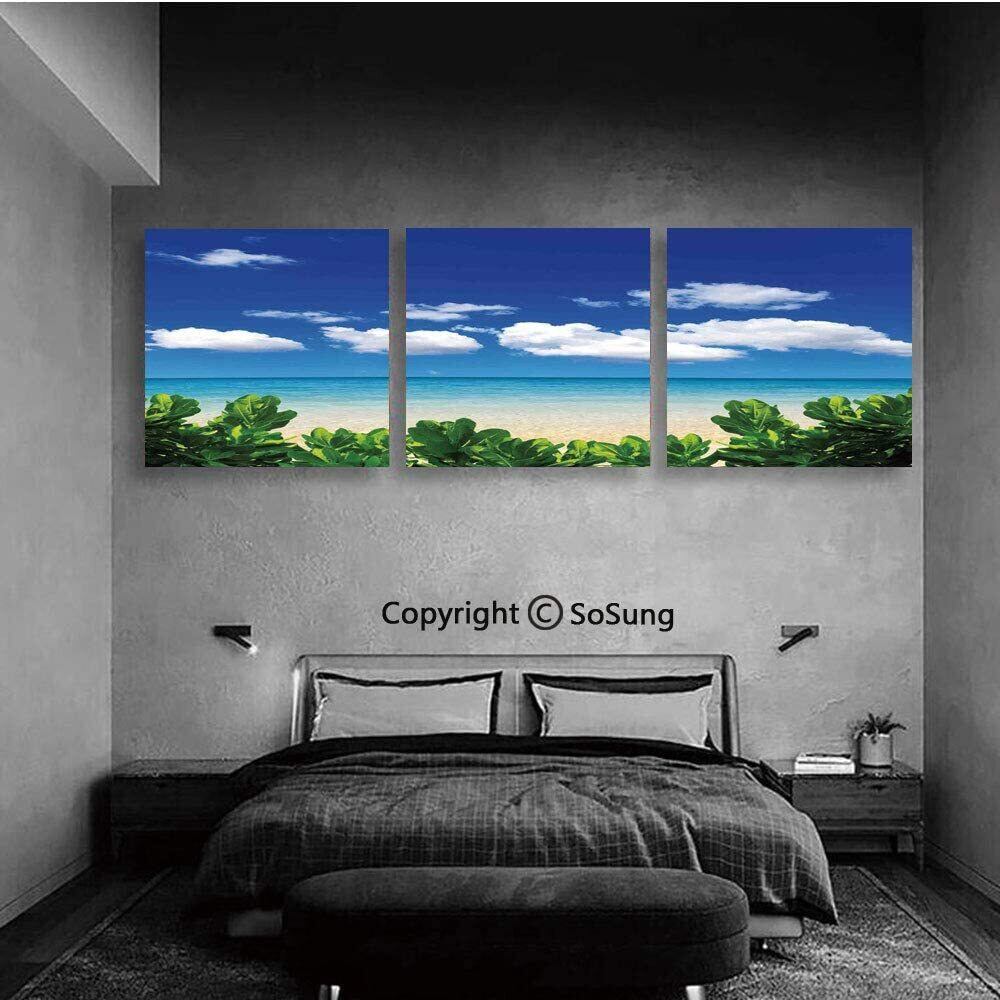 木枠付き 3枚組 壁掛け キャンバス 海 ビーチ 砂浜 青空 雲 水平線 リゾート 南国 南の島 インテリア ディスプレイ アート 輸入雑貨 人気