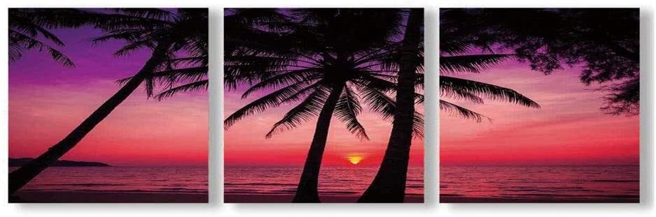 木枠付き 3枚組 壁掛け キャンバス 海 ビーチ 砂浜 ヤシの木 リゾート 南国 南の島 夕日 夕陽 インテリア ディスプレイ アート 輸入雑貨