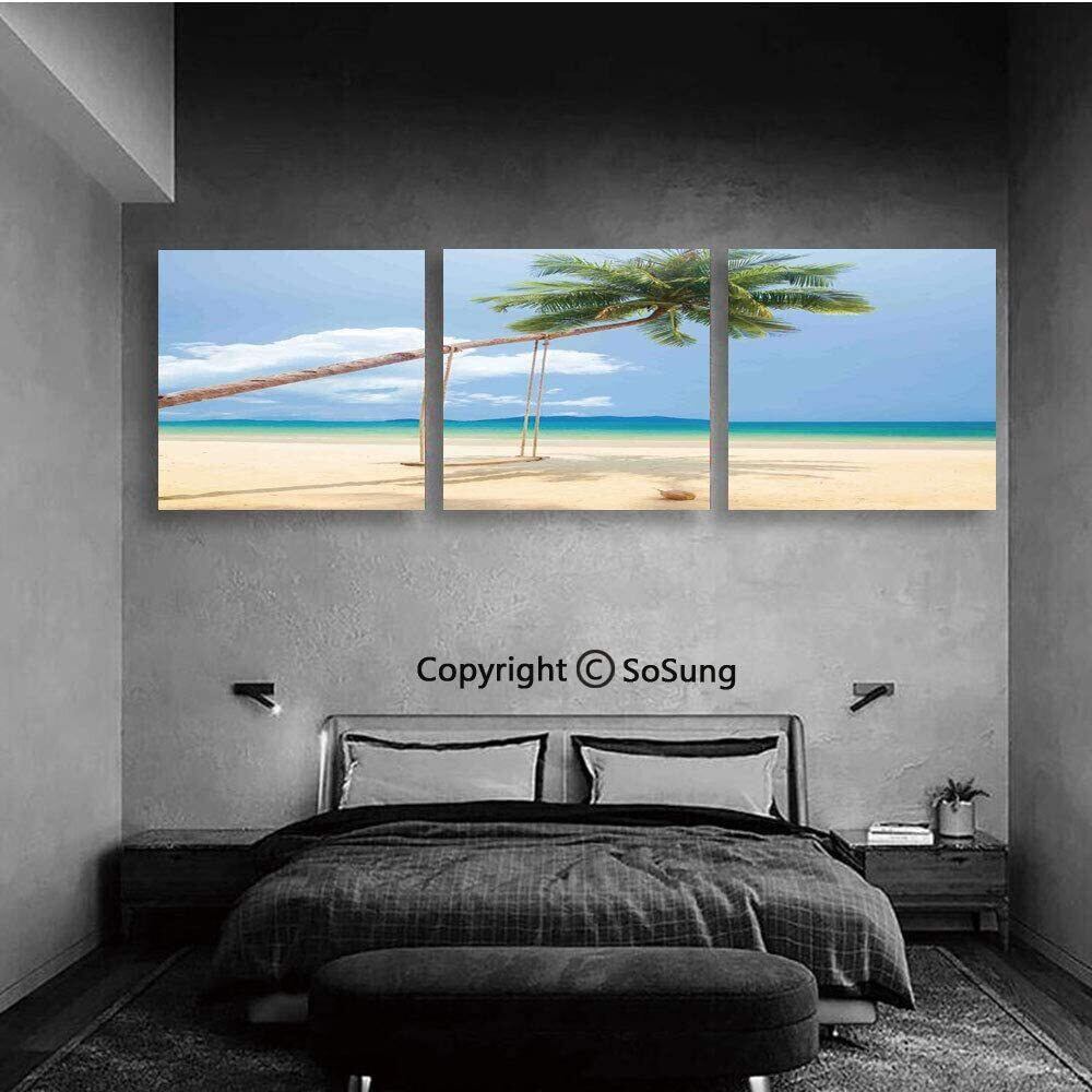 木枠付き 3枚組 壁掛け キャンバス 海 ビーチ 砂浜 ヤシの木 ブランコ 青空 水平線 リゾート 南国 南の島 インテリア ディスプレイ アート