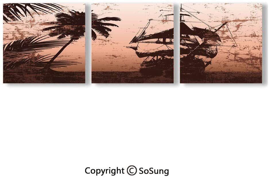 木枠付き 3枚組 壁掛け キャンバス 海 ビーチ ヤシの木 海賊船 水平線 リゾート 南国 南の島 インテリア ディスプレイ アート 輸入雑貨