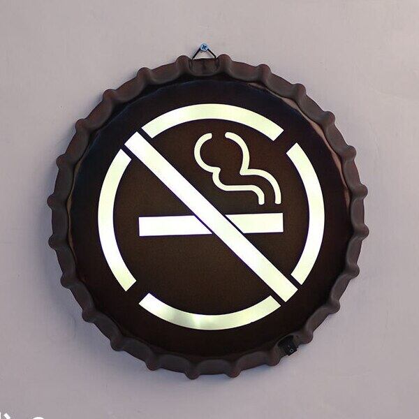 LEDライト ネオンサイン 看板 標識 ボトルキャップ No smoking 全面禁煙 タバコ おしゃれ エコ インテリア ディスプレイ アート 輸入雑貨