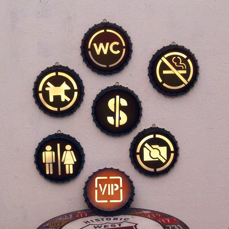 LEDライト ネオンサイン 看板 標識 ボトルキャップ WC トイレ お手洗い 便所 人気 おしゃれ エコ インテリア ディスプレイ アート 輸入雑貨