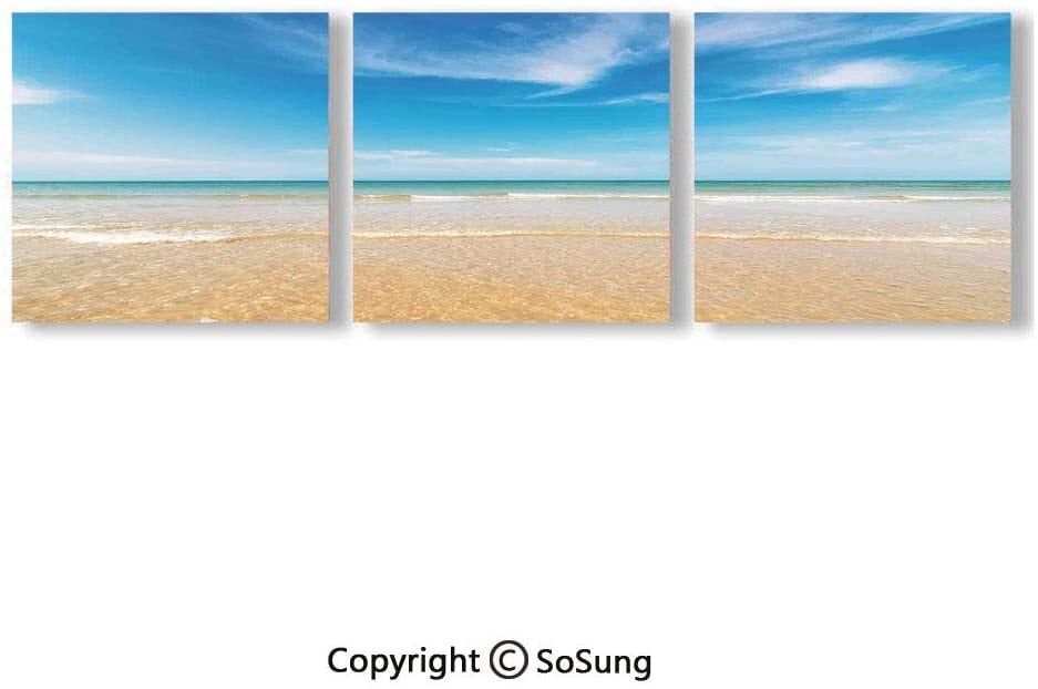 木枠付き 3枚組 壁掛け キャンバス 海 ビーチ 砂浜 浅瀬 青空 水平線 リゾート 南国 南の島 インテリア ディスプレイ アート 輸入雑貨 人気