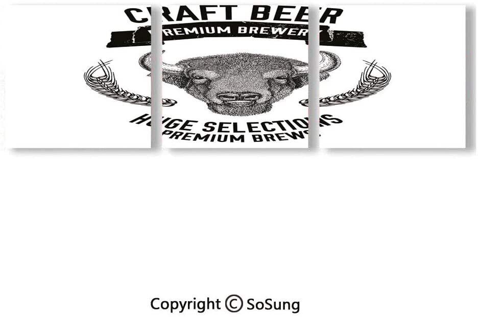 木枠付き 3枚組 壁掛け キャンバス 牛 BEER プレミアムクラフトビール 英字 英語 英文 白黒 モノクロ インテリア ディスプレイ 輸入雑貨