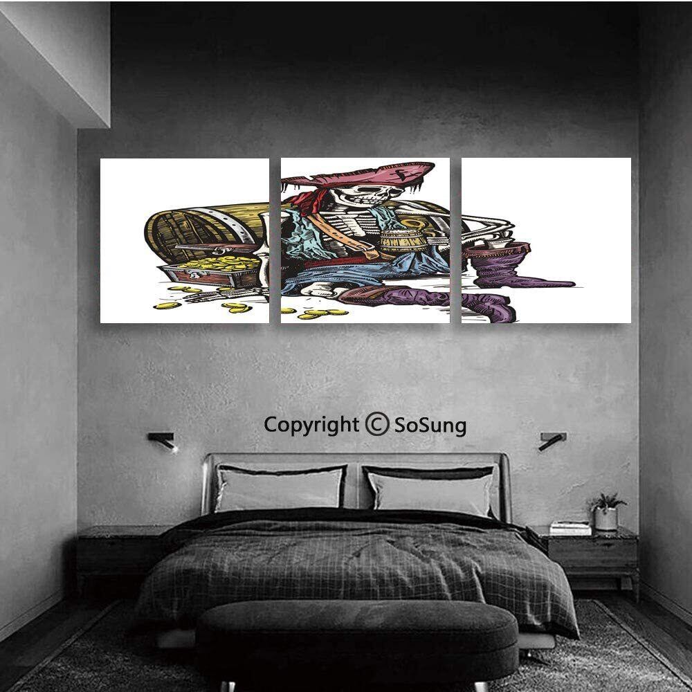 木枠付き 3枚組 壁掛け キャンバス 海賊 盗賊 パイレーツ カリビアン スカル ドクロ 骸骨 樽 宝箱 ゴールド インテリア アート 輸入雑貨