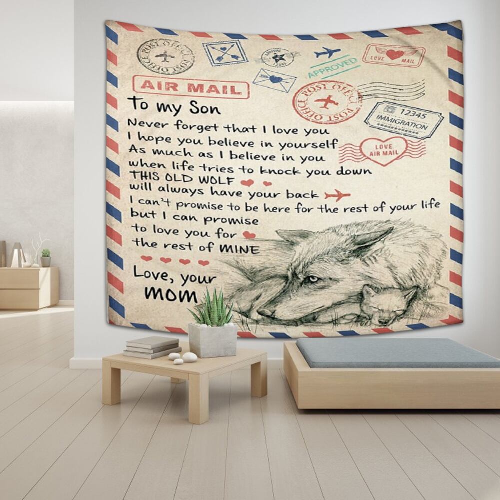 壁掛け タペストリー To my Son 息子へ 手紙 レター AIR MAIL 親子 Mom 母より 英字 英語 英文 おしゃれ インテリア ディスプレイ 輸入雑貨