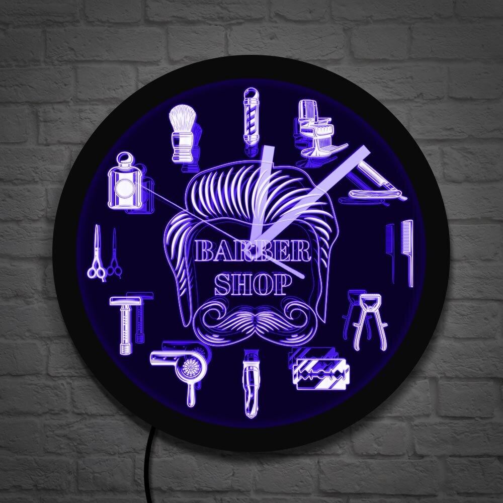 壁掛け時計 LEDライト ネオンサイン Barber Shop 床屋 美容室 理容師 美容師 散髪 おしゃれ エコ インテリア ディスプレイ アート 輸入雑貨