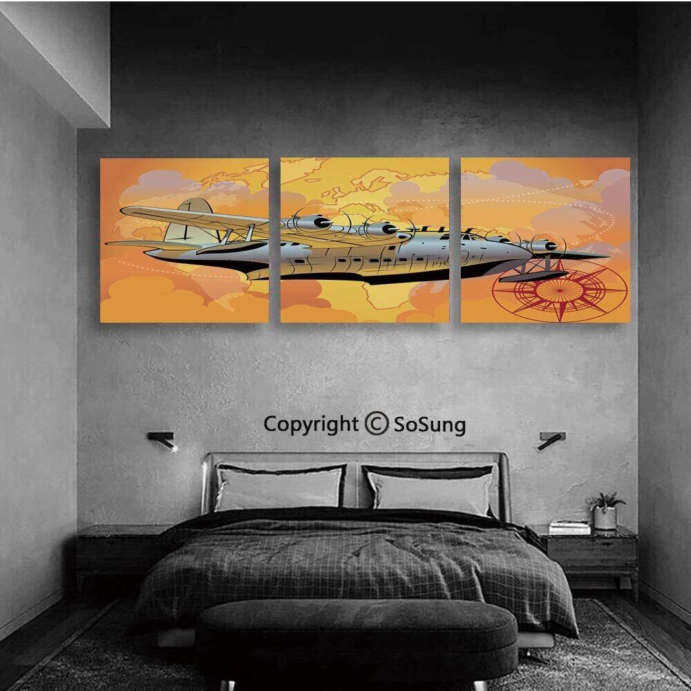 送料無料 木枠付き 3枚組 壁掛け キャンバス 飛行機 プロペラ機 世界地図 コンパス おしゃれ インテリア ディスプレイ アート 輸入雑貨
