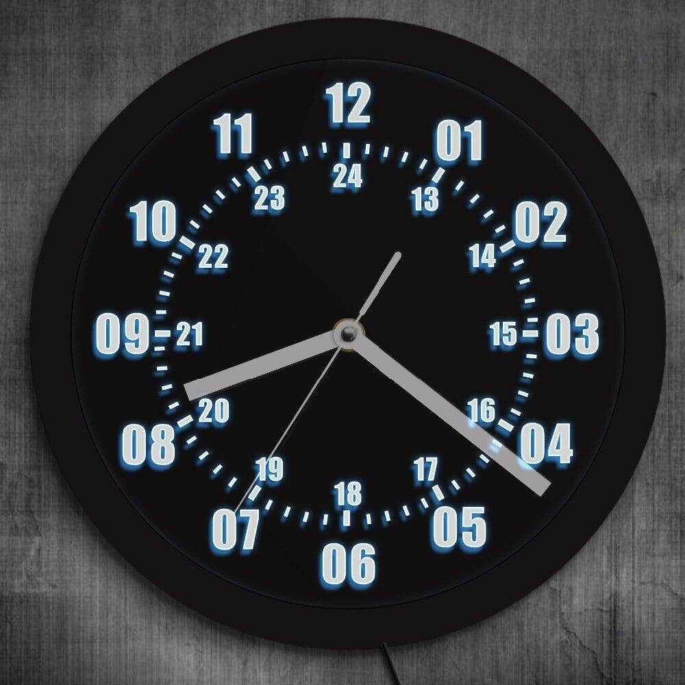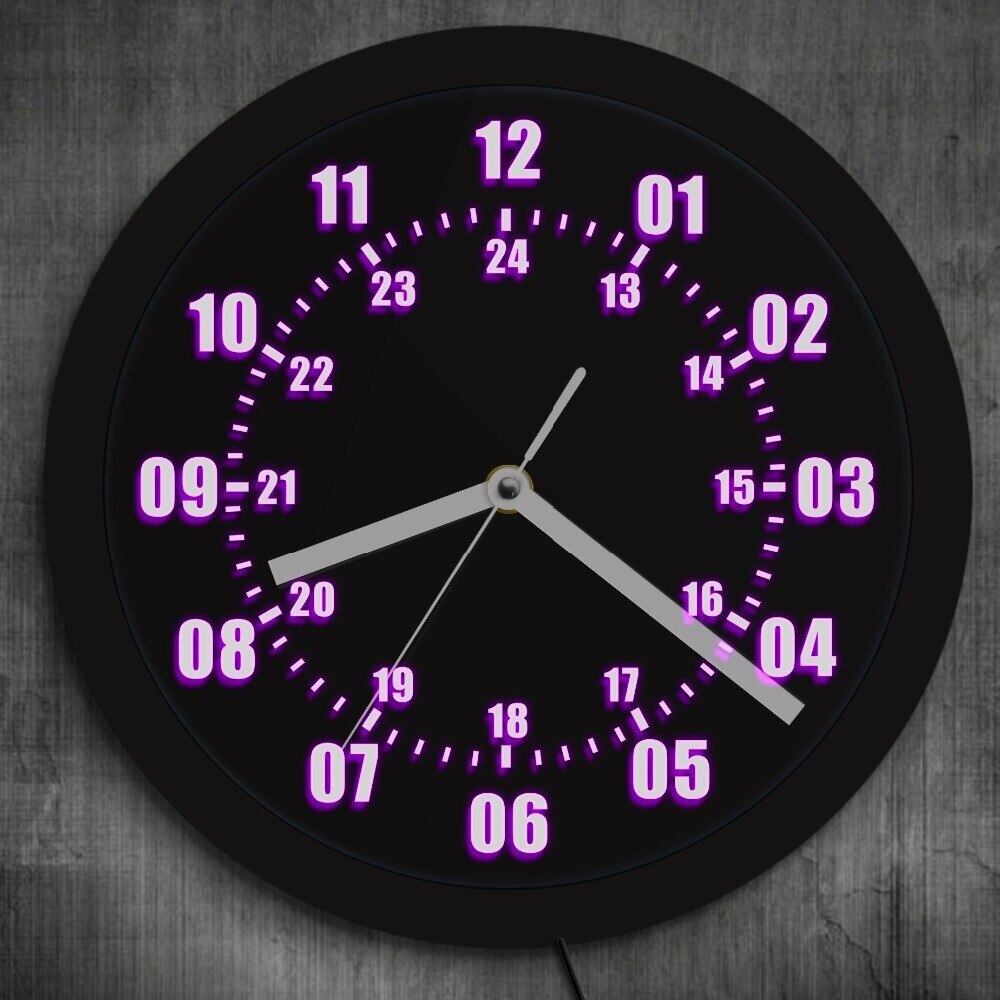 壁掛け時計 LEDライト ネオンサイン 24時間表示 ミリタリー カラフル レインボー おしゃれ エコ インテリア ディスプレイ アート 輸入雑貨