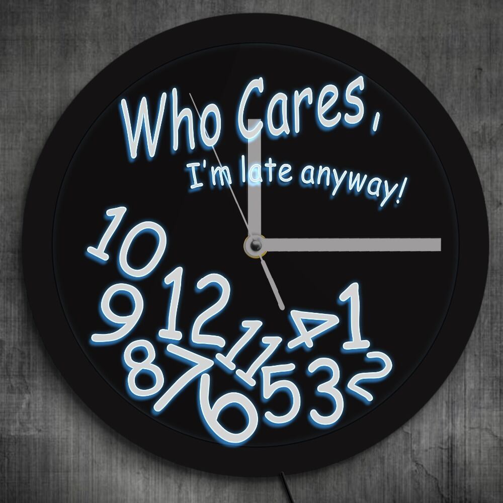 壁掛け時計 LEDライト ネオンサイン Who Cares I'm Late Anyway カラフル レインボー おしゃれ インテリア ディスプレイ アート 輸入雑貨