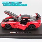 送料無料 1/24 Dodge Viper SRT10 ACR アメリカンスポーツカー 赤 レッド 黒 ブラック ミニカー ダイキャストカー モデルカー コレクション