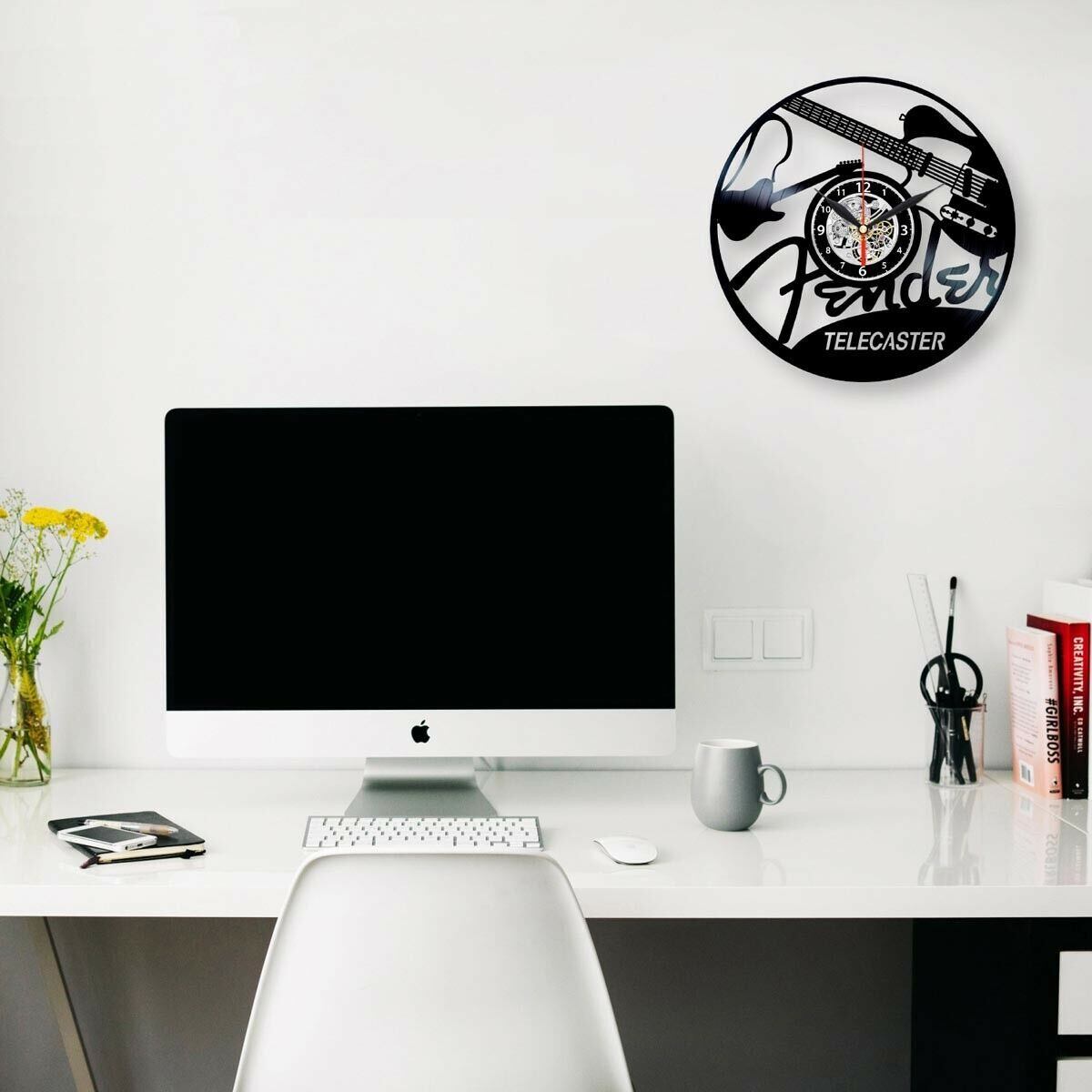送料無料 30cm レコード盤 壁掛け時計 Fender Telecaster エレキ ギター ベース 楽器 人気 おしゃれ エコ ディスプレイ アート 輸入雑貨
