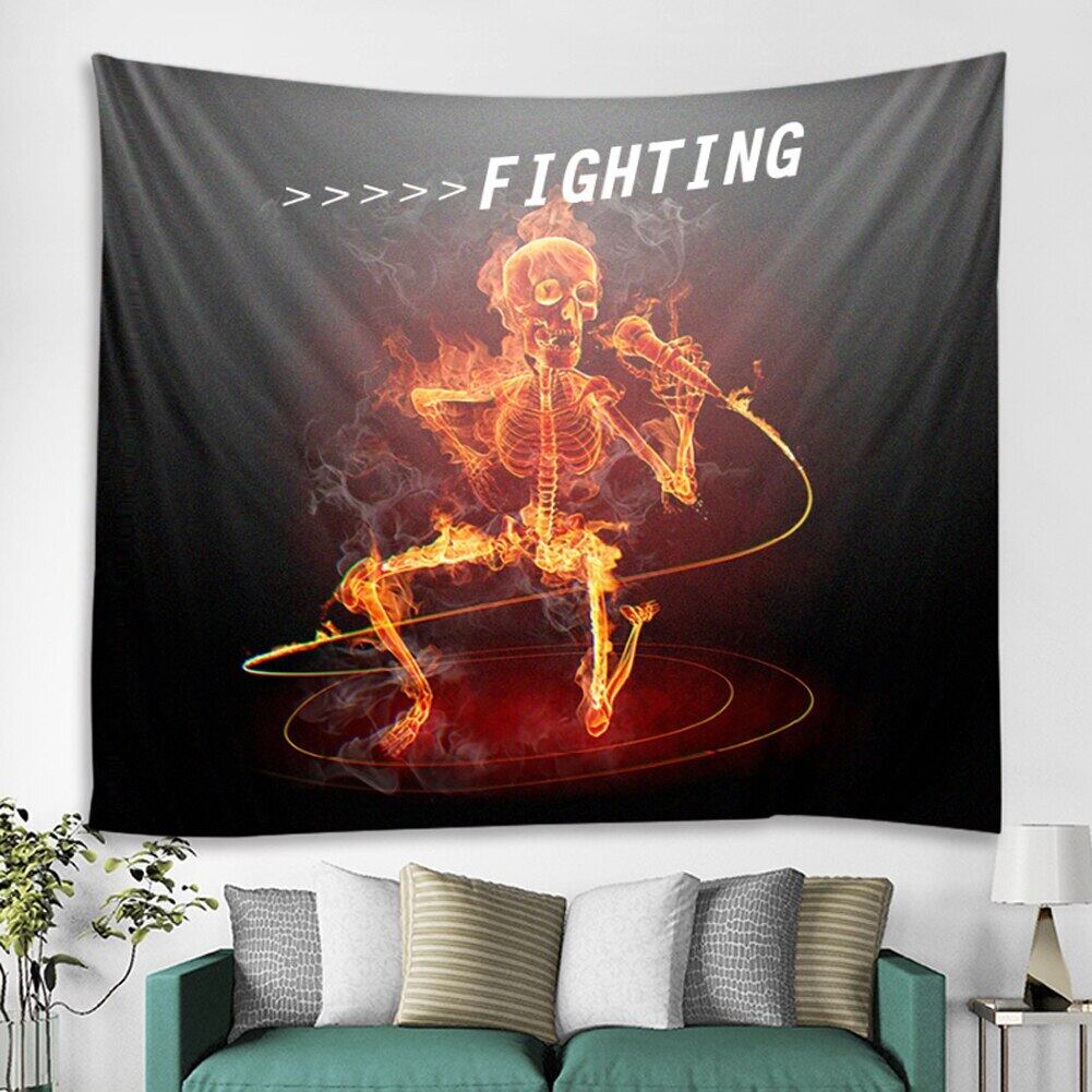 送料無料 壁掛け タペストリー Fighting アーティスト 歌手 シンガー スカル ドクロ 骸骨 人気 インテリア ディスプレイ アート 輸入雑貨