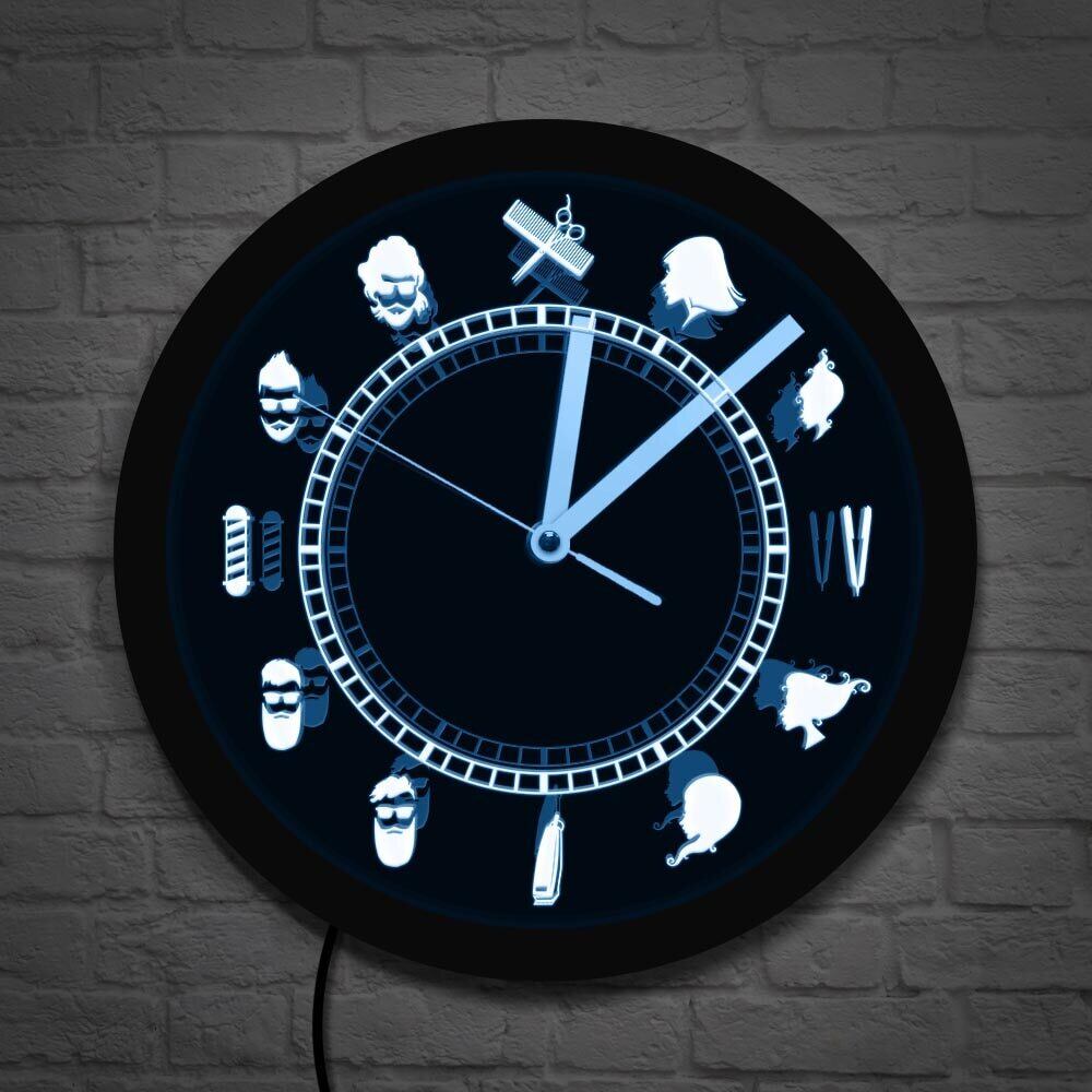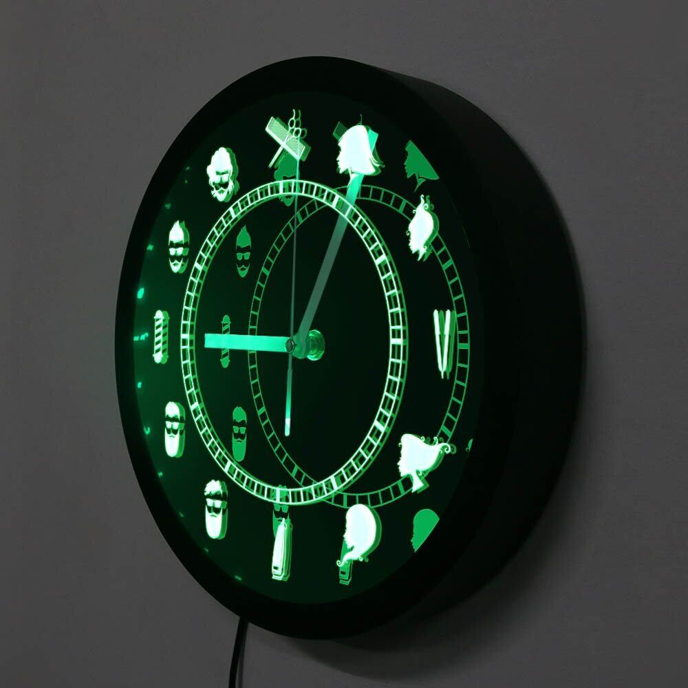 壁掛け時計 LEDライト ネオンサイン 床屋 美容室 理容師 美容師 散髪 カラフル レインボー おしゃれ エコインテリア ディスプレイ 輸入雑貨