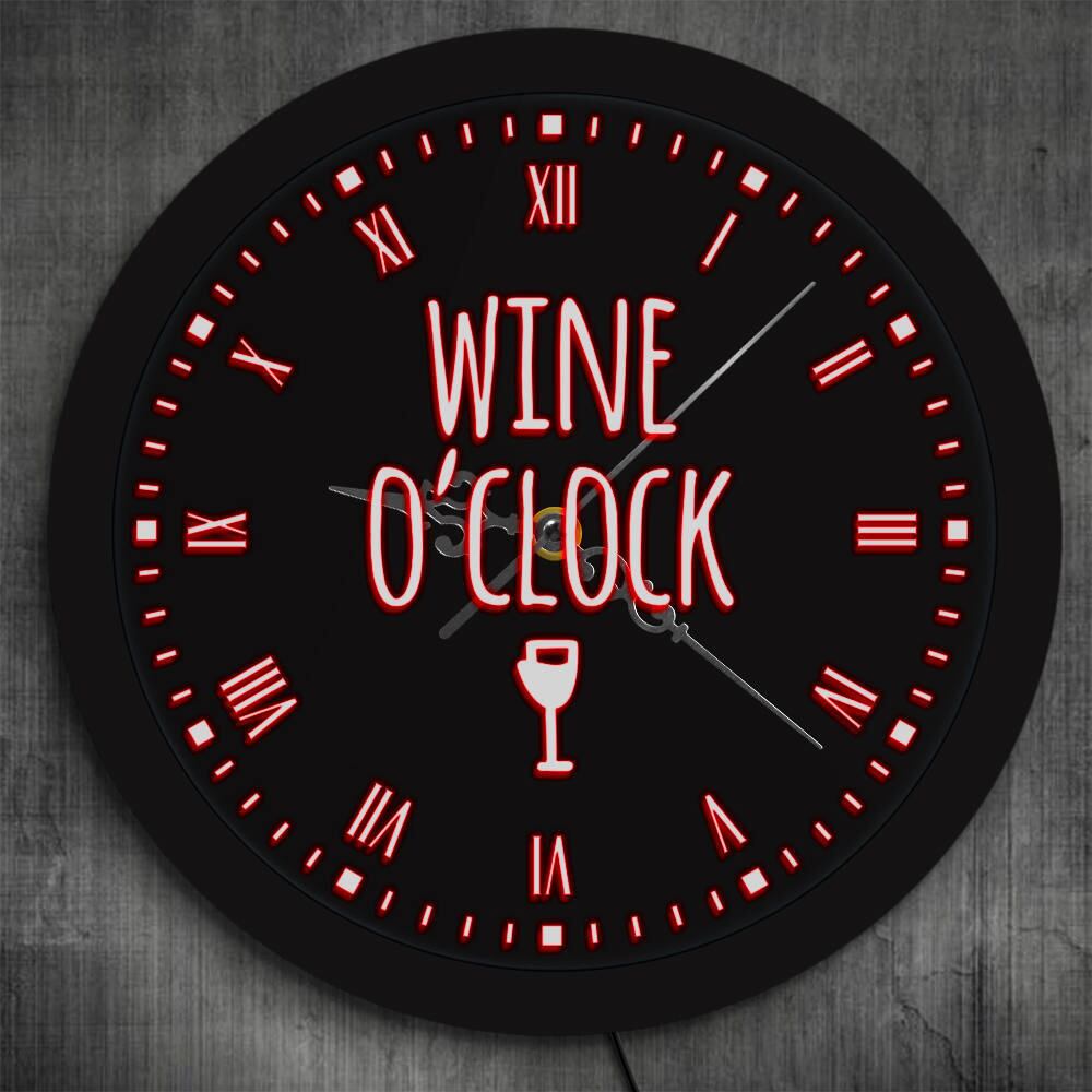 壁掛け時計 LEDライト ネオンサイン Wine O'Clock Alcohol お酒 Bar カラフル レインボー おしゃれ エコ インテリア ディスプレイ 輸入雑貨