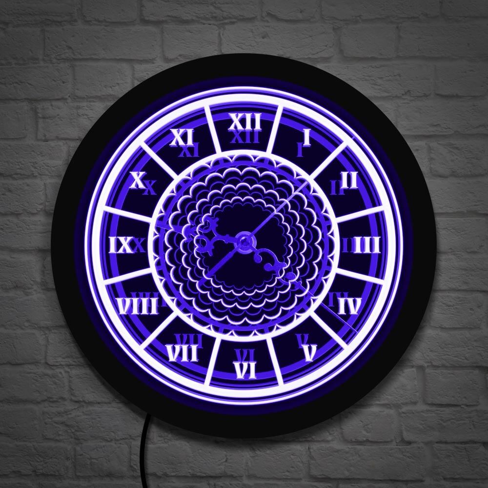 壁掛け時計 LEDライト ネオンサイン ローマ数字 ラテン文字 アラビア数字 花びら レインボー インテリア ディスプレイ アート 輸入雑貨