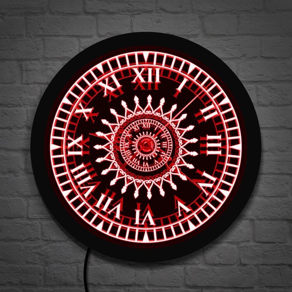 壁掛け時計 LEDライト ネオンサイン 仏教 ヒンドゥー教 マンダラ 花柄 フラワー おしゃれ エコ インテリア ディスプレイ アート 輸入雑貨